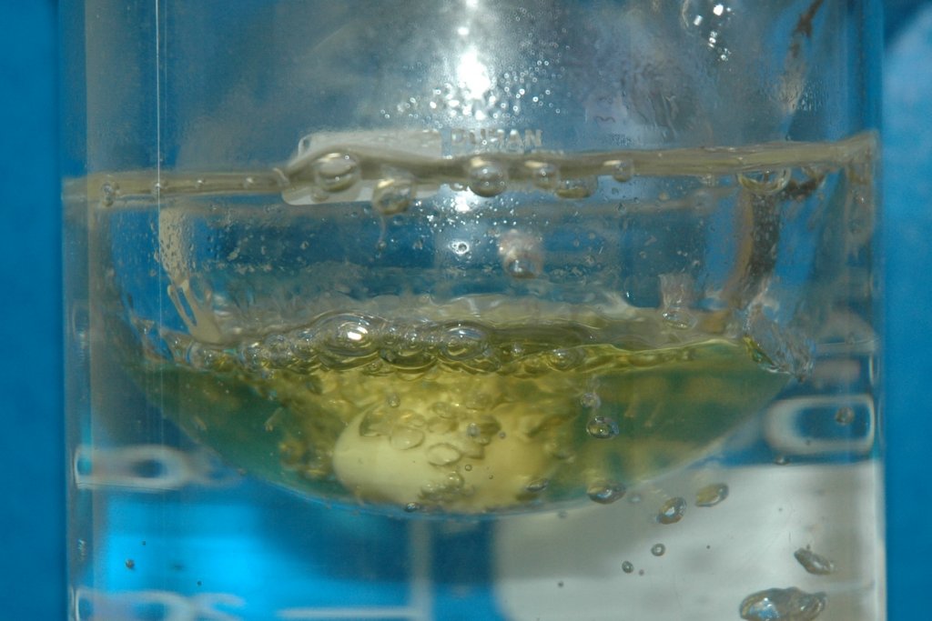 Das hellgelbe Reaktionsgemisch am Anfang: