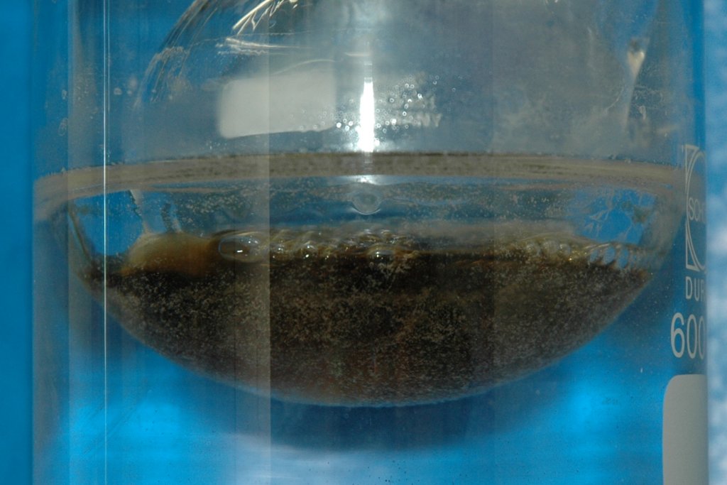 Phenytoin 1.JPG (95.3 KB . 1024x683 - angeschaut 2791 Mal)Nach 1,5 Stunden hat der Kolbeninhalt eine dunkle, schmutzig-braune Farbe angenommen: