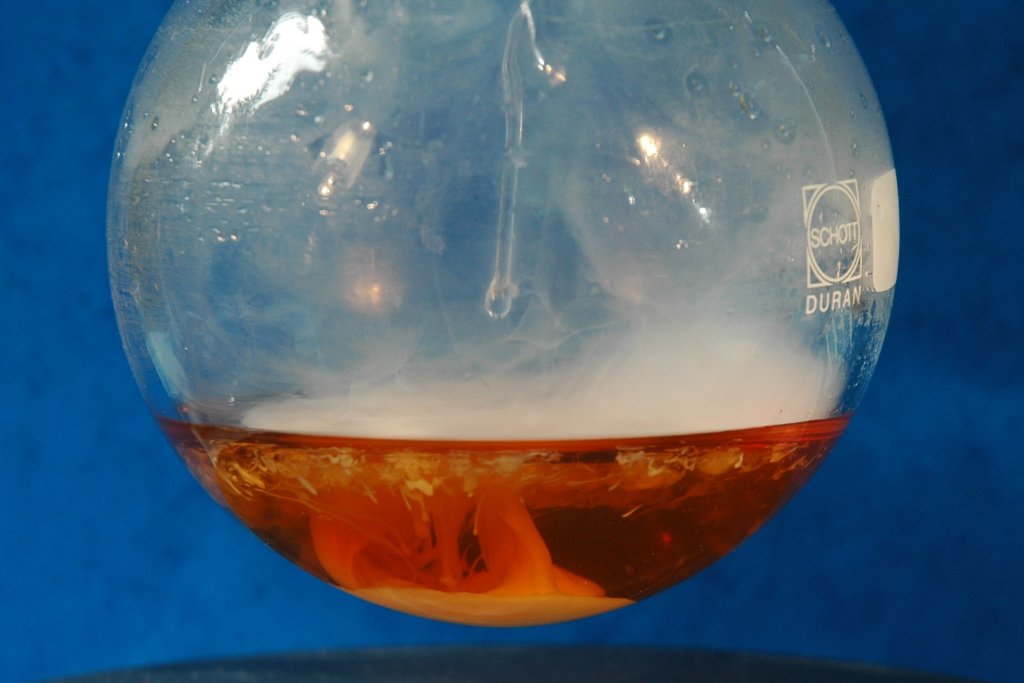 Phenytoin 2.JPG (94.63 KB . 1024x683 - angeschaut 2781 Mal)Beim Ansäuern fällt das Phenytoin aus. Die weißen Nebel sind darauf zurückzuführen, dass sich in einer Nebenreaktion Ammoniak gebildet hat, welches nun mit den Salzsäuredämpfen reagiert.