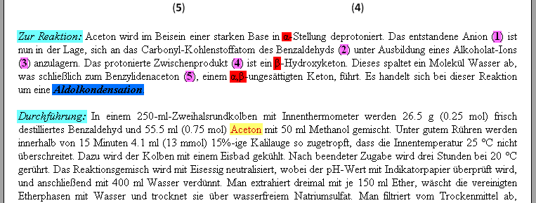 attachment02.png (61.45 KB . 809x784 - angeschaut 2305 Mal)Schritt 1: Ersetzen von "XX" gegen den Namen der Verbindung zu der die Synthesevorschrift gehört. Also Strg+H und "XX" z.B. gegen "Benzylidenaceton" ersetzen -> Alle ersetzen.
